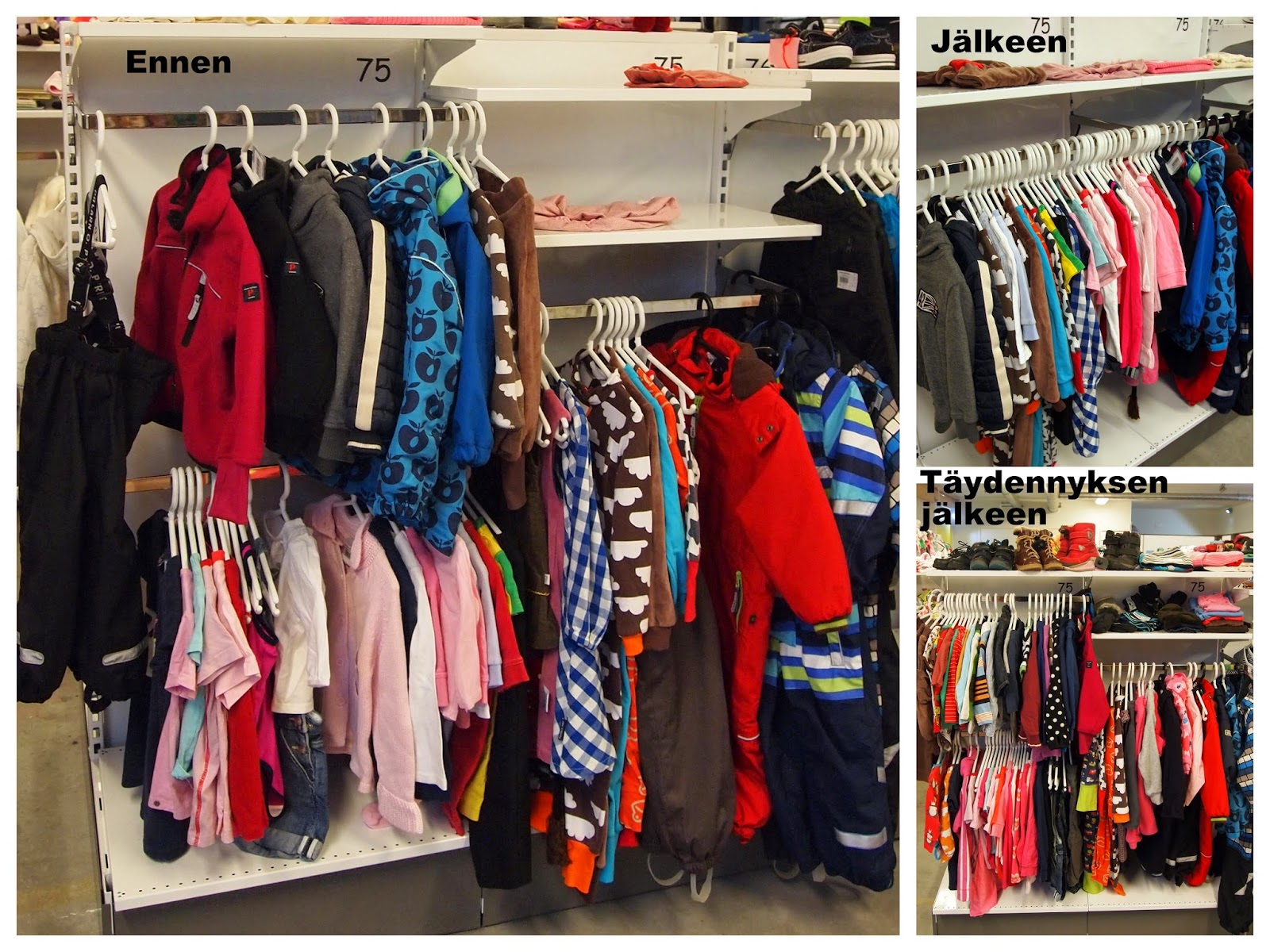 ENNEN: Hyvän myynnin ansiosta hyllyt ammottavat tyhjänä ja tangoilla on turhan vähän tavaraa. Paikka antaa "kolutun" vaikutelman, ostajalle voi tulla mielikuva, että no, parhaat on jo myyty, ei kannata katsoa lähemmin.